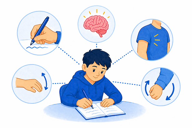 Beim Schreiben arbeiten viele Teile vom Körper zusammen: