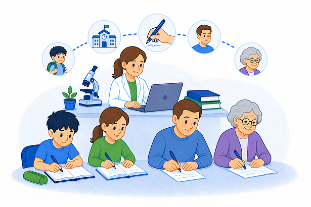 Auch für Erwachsene und alte Menschen ist Schreiben wichtig.
